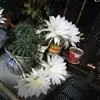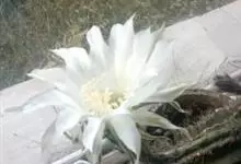 仙人球花 仙人掌科,仙人球属。植株单生或成丛。幼株球形,老株长成圆筒状,高可达75厘米,直径12-15厘米。球体暗绿色,具棱11-12。刺锥状,黑色,长1-1.5厘米。花着生于球体侧方,大型嗽喇叭状…全部>>