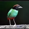 绿胸八色鸫:是雀形目八色鸫科的鸟类,共有12个亚种。体长为16-18厘米,体重65-69克。体型圆胖,尾短,腿长。头黑,上体绿色,两翼深色而具白色斑纹,头顶至后枕深褐,胸及腹部苹果绿,臀亮红。…全部>>