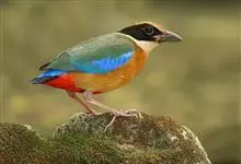 蓝翅八色鸫是雀形目八色鸫科的鸟类。体长17-20厘米,体重类约48-70克,体型圆胖,尾短,腿长,以身体具有红、绿、蓝、白、黑、黄、褐、栗等鲜艳夺目,丰富艳丽的色彩而得名,是很有观赏价值的鸟类。主要…全部>>