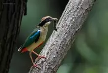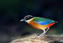 蓝翅八色鸫是雀形目八色鸫科的鸟类。体长17-20厘米,体重类约48-70克,体型圆胖,尾短,腿长,以身体具有红、绿、蓝、白、黑、黄、褐、栗等鲜艳夺目,丰富艳丽的色彩而得名,是很有观赏价值的鸟类。主要…全部>>