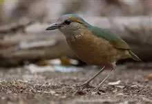 栗头八色鸫又叫锅巴雀,体长为24-26厘米,体重100-135克,是雀形目八色鸫科的鸟类。体型圆胖,尾短,腿长,常在森林底层或低植被中找食无脊椎动物。叫声简单哀婉。…全部>>
