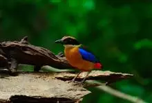 蓝翅八色鸫是雀形目八色鸫科的鸟类。体长17-20厘米,体重类约48-70克,体型圆胖,尾短,腿长,以身体具有红、绿、蓝、白、黑、黄、褐、栗等鲜艳夺目,丰富艳丽的色彩而得名,是很有观赏价值的鸟类。主要…全部>>
