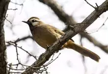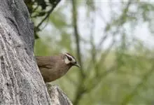 白颊噪鹛是雀形目噪鹛科噪鹛属鸟类,又称土画眉、小画眉、小噪鹃。成鸟额至头顶栗褐色,长眉纹、眼先和颊纹棕白色,眼后至耳羽深褐色,…全部>>