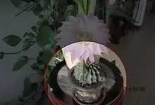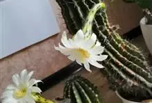 仙人球花 仙人掌科,仙人球属。植株单生或成丛。幼株球形,老株长成圆筒状,高可达75厘米,直径12-15厘米。球体暗绿色,具棱11-12。刺锥状,黑色,长1-1.5厘米。花着生于球体侧方,大型嗽喇叭状…全部>>
