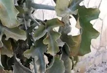 仙女之舞是景天科、伽蓝菜属植物。常绿肉质灌木,株高可达2-3米。幼株茎上有毛。叶有柄;单叶对生,阔卵状三角形,肉质;新叶开展,老叶正面凹、背面圆凸,缘具稀锯齿,橄榄绿色至灰绿色,被稠密的灰白色毛。…全部>>