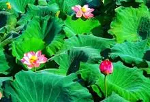 荷花:属山龙眼目、莲科,是莲属中2个物种“莲花”和“黄莲花”及众多人工培育品种的通称。是多年生水生草本花卉。地下茎长而肥厚,有长节,叶盾圆形。花期6至9月,单生于花梗顶端,花瓣多数,嵌生在花托穴内,…全部>>