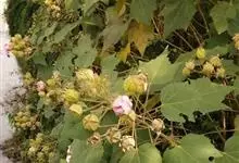 木芙蓉,锦葵科木槿属落叶灌木或小乔木。小枝上有细绒毛;叶片为卵状心形,托叶为披针形,常早落;花单生,花萼为钟形,花冠初为白色或淡红色,后逐渐变为深红色;果实为扁球形,有淡黄色的毛附着。花期8到10月。…全部>>
