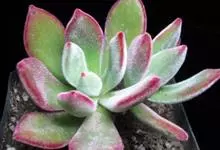 锦晃星是景天科、石莲花属多肉植物。多年生小灌木状多浆植物,灰绿色卵状倒披针形肥厚肉质叶轮状互生,全缘,椭圆尖头,长3-4厘米,宽2-2.5厘米,厚约1厘米,玲凉季节阳光下,叶端及上缘呈红色。…全部>>