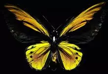 金裳凤蝶是凤蝶科、裳凤蝶属的动物。金裳凤蝶身体呈黑色,头、颈和胸侧有红毛,腹部有黑黄两色相间条纹,雄蝶前翅黑色,具黑天鹅绒光泽,各脉两侧灰白色,后翅金黄色,各室外缘有等腰三角形黑斑1枚,斑内侧有晕,…全部>>