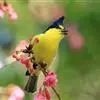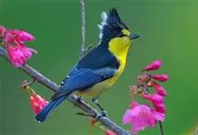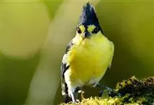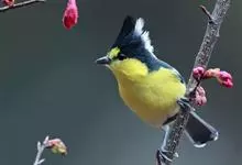 台湾黄山雀体长约13厘米。头顶至后颈黑色,有一长的黑色羽冠,羽冠末端和后颈中央白色。背苍绿色,两翅和尾黑色,羽缘蓝灰色,外侧尾羽白色。额基和下体鲜黄色,尾下覆羽白色,雄鸟腹部有一黑斑。…全部>>