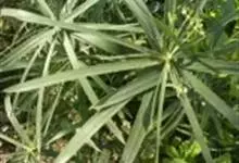 风车草,莎草科莎草属多年生草本植物。其株高60~150厘米,茎近圆柱形,直立无分枝;根状茎短、粗大,须根坚硬;叶顶生为伞状;有多数辐射枝;小穗多数,密生于辐射分枝的顶端;有果为椭圆形;花褐色,…全部>>