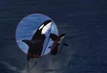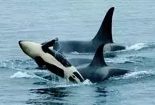 虎鲸,是鲸偶蹄目海豚科虎鲸属哺乳动物。成体体重6600千克,平均体长6-9米;头部略圆,…全部>>