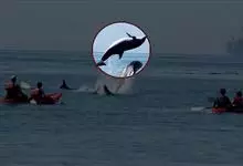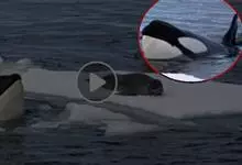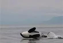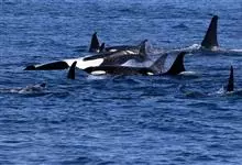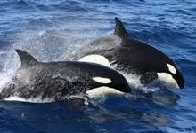虎鲸,是鲸偶蹄目海豚科虎鲸属哺乳动物。成体体重6600千克,平均体长6-9米;头部略圆,…全部>>