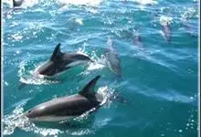 真海豚,身体细而流线型。体色十分复杂而独特,通常十字交叉型,黄褐色在前灰色在后,背面黑色向下延伸,在背鳍下面形成V形区域。具白色胸斑。头前额喙平缓向倾斜,喙细长,相对较短。黑唇末端白色。背鳍大,…全部>>