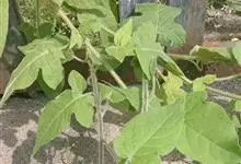 假烟叶树是茄科、茄属植物。小乔木,高1.5-10米,小枝密被白色具柄头状簇绒毛。叶大而厚,卵状长圆形,长10-29厘米,宽4-12厘米,先端短渐尖,基部阔楔形或钝,叶柄粗壮,长约1.5 -5.5厘米,…全部>>