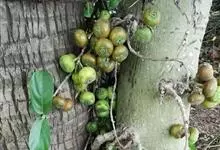 大果榕是桑科榕属的小乔木,株高可达10米;幼枝被柔毛;叶互生,宽卵状心形或近圆形;雄花无梗、匙形、花丝长,雌花生于雌株榕果内,子房白色;榕果簇生于树干基部或老茎短枝上、扁球形或陀螺形,…全部>>