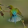 绿喉蜂虎是佛法僧目、蜂虎科的小型鸟类,共有9个亚种。身长22-25厘米,翼展29-30厘米,体重15-20克。喉绿色,额部、头顶至上背为锈红色,其余上体均为亮绿色。中央尾羽延长且端段狭细,…全部>>