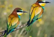 蓝颊蜂虎:是蜂虎科、蜂虎属的鸟类,共有2个亚种。体长27-33厘米,翼展46-49厘米,体重38-50克。嘴形细长而下弯,先端尖,…全部>>