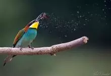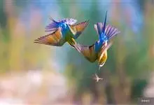 蓝颊蜂虎:是蜂虎科、蜂虎属的鸟类,共有2个亚种。体长27-33厘米,翼展46-49厘米,体重38-50克。嘴形细长而下弯,先端尖,…全部>>