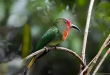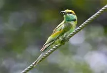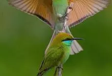 绿喉蜂虎是佛法僧目、蜂虎科的小型鸟类,共有9个亚种。身长22-25厘米,翼展29-30厘米,体重15-20克。喉绿色,额部、头顶至上背为锈红色,其余上体均为亮绿色。中央尾羽延长且端段狭细,…全部>>