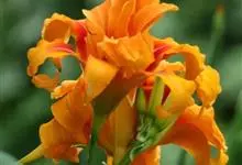 重瓣萱草 L. var. kwanso Regel),百合科萱草属植物。根近肉质,中下部有纺锤状膨大;花桔黄色,花被裂片多数,雌雄蕊发育不全。花被管较粗短,长2-3厘米;内花被裂片宽2-3厘米。…全部>>