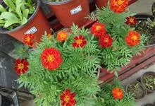 万寿菊是菊科万寿菊属一年生草本植物,别名孔雀菊、缎子花、臭菊花、西番菊、红黄草、小万寿菊、臭芙蓉、孔雀草。万寿菊茎近基部分枝。叶羽状分裂,长5-10厘米,宽4-8厘米,裂片长椭圆形或披针形,具锐齿,…全部>>