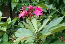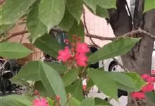 变叶珊瑚花,是大戟科麻风树属常绿灌木。变叶珊瑚花单叶互生,倒阔披针形,叶面为浓绿色,叶背为紫绿色,叶柄具茸毛,叶面平滑,常丛生于枝条顶端;花单性,雌雄同株,花冠红色或粉红色,雌、雄花不同时开放;具乳汁,…全部>>