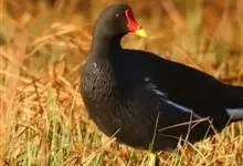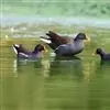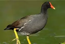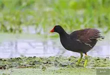 黑水鸡:是鹤形目、秧鸡科的鸟类,共有12个亚种。中型涉禽,体长24-35厘米。嘴长度适中,鼻孔狭长;头具额甲,后缘圆钝;嘴和额甲色彩鲜艳。翅圆形,第2枚初级飞羽最长,或第2枚和第3枚初级飞羽等长,…全部>>