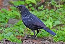 紫啸鸫是雀形目鹟科啸鸫属鸟类,又称黑雀儿,山鸣鸡、乌精。成鸟眼先及颏绒黑色;前额、头顶至背及肩羽和颈侧呈深紫蓝色,羽端具较密集的亮蓝色点斑;腰至尾上覆羽的深紫蓝色较暗而杂黑褐色,…全部>>