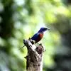 棕胸蓝姬鹟:属小型鸣禽,体长10-13厘米,体重6-10克,是一种体型很小的灰蓝及棕色鹟,雌雄羽色不同,雄鸟羽色艳丽,雌鸟羽色暗淡。雄鸟上体深蓝色,胸橙黄色,下腹灰白色。亚成鸟具褐色斑驳。…全部>>