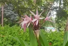 红花文殊兰又名西南文殊兰,拉丁文名Crinum latifolium L.多年生粗壮草本。分布于广西、贵州、云南。常生于河床、沙地。越南至印度及马来西亚也有分布。全部>>