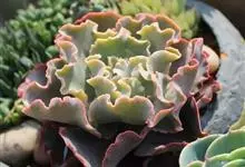 女王花笠,又名扇贝石莲花、女王花舞笠,是景天科拟石莲花属的多肉植物。由美国加利福尼亚州的育种师Dick Wright于1964年培育。特征是呈大波浪状褶皱的红色叶缘和气质高贵的粉紫色调。…全部>>