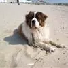 圣伯纳犬,别名巴里汉德,属于大型工作犬,肩高约65~90厘米,体重约50~90千克。圣伯纳犬身体强壮,被毛红褐色和白色相间,头圆而宽大。颈部强壮,胸宽深,背直。前肢长直,腕关节略前倾,后肢腿骨粗壮,…全部>>