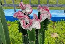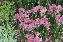 彩春峰是大戟科大戟属肉质植物,彩春峰的肉质茎依品种的不同有暗红色、乳白、淡黄及镶边、斑纹等复色。彩春峰的性状很不稳定,栽培中经常会发生色彩的变异,如暗紫红色肉质茎会长出白色黄色斑块等。…全部>>