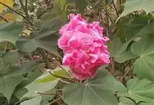 木芙蓉,锦葵科木槿属落叶灌木或小乔木。小枝上有细绒毛;叶片为卵状心形,托叶为披针形,常早落;花单生,花萼为钟形,花冠初为白色或淡红色,后逐渐变为深红色;果实为扁球形,有淡黄色的毛附着。花期8到10月。…全部>>