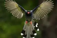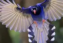 台湾蓝鹊:体长64至65厘米,翼展18至21厘米,尾长约40厘米,尾羽长占了总体长的三分之二。头、脸、颈、喉、胸都是黑色,黄色的眼珠包围黑色的瞳孔,鲜红色的鸟喙、双脚,…全部>>