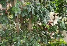 石楠 Kalkman),是蔷薇科石楠属的常绿乔木,高5~12米,株型紧凑,树冠圆球形。树枝为褐灰色;鳞片为褐色,没有毛;叶片革质,长椭圆至侧卵状椭圆形,有锯齿,新叶红色光亮。复伞房花序,白色小花,…全部>>