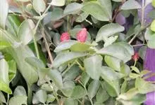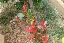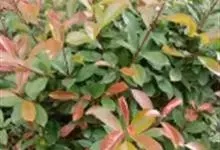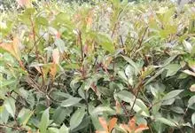 红叶石楠 是蔷薇科,石楠属杂交种,为常绿小乔木或灌木,乔木高可达5米、灌木高可达2米。叶片革质,长圆形至倒卵状、披针形,叶端渐尖,叶基楔形,叶缘有带腺的锯齿,花多而密,复伞房花序,花白色,梨果黄红色,…全部>>