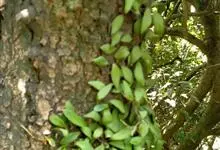 伏石蕨是水龙骨科、伏石蕨属小型附生蕨类植物。根状茎细长横走,淡绿色,疏生鳞片粗筛孔,两侧不规则分叉。叶远生,二型;叶片近球圆形或卵圆形,基部圆形或阔楔形,全缘;能育叶狭缩成舌状或狭披针形,叶脉网状,…全部>>