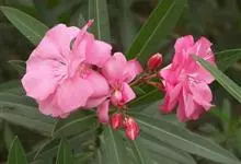夹竹桃,又名红花夹竹桃、欧洲夹竹桃,是夹竹桃科夹竹桃属的一种常绿直立大灌木,枝条灰绿色,含水液。叶披针形,3叶轮生。聚伞花序顶生,花冠粉红至深红色,花冠漏斗状,有特殊香味。蓇葖果,圆柱形。种子长圆形,…全部>>