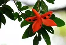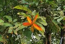 假苹婆是锦葵科苹婆属乔木植物。幼枝被毛;叶椭圆形或披针形,先端骤尖,基部钝或近圆无毛;圆锥花序腋生,花淡红色;蓇葖果鲜红色,长卵圆形或长椭圆形;种子卵圆形黑褐色;花期4-6月。…全部>>