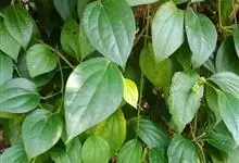 假蒟是胡椒科胡椒属多年生草本植物。小枝近直立,无毛或幼时被极细的粉状短柔毛;叶近膜质,有细腺点,下部的阔卵形或近圆形;花单性,雌雄异株,聚集成与叶对生的穗状花序;总花梗与花序等长或略短,…全部>>