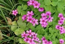 红花酢浆草别名铜锤草、大酸味草、幸运草等,是酢浆草科酢浆草属的多年生直立草本植物。其无地上茎,地下部有球状鳞茎;叶基生,叶柄长5~30cm或更长,被毛;花瓣5,倒心形,淡紫色至紫红色,基部颜色较深。…全部>>