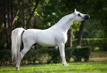 阿拉伯马是奇蹄目马科马属哺乳动物。体格不算大,体质干燥结实。头形轻俊干燥,前额宽广,向鼻端逐渐变细,面部正直或稍凹;耳短小、竖立,眼大有神,两眼距离宽,鼻孔大,下颚深而广;颈长而形美;肩、系较斜,…全部>>
