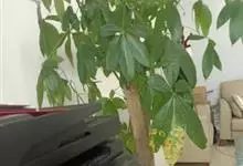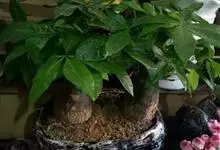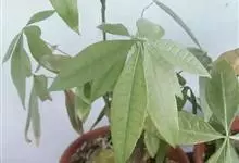 瓜栗 Walp. ),俗称发财树,木棉科小乔木,高4-5米,树冠较松散,幼枝栗褐色,无毛。小叶具短柄或近无柄。花单生枝顶叶腋;花梗粗壮,被黄色星状茸毛,脱落;萼杯状,近革质;花瓣淡黄绿色,狭披针形…全部>>