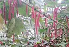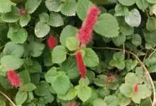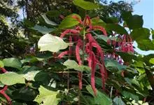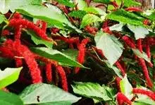 红穗铁苋菜:为大戟科、铁苋菜属植物,灌木,高0.5-3米。嫩枝被灰色短绒毛,毛逐渐脱落,小枝无毛。 花序色泽鲜艳,葇荑花序下垂,如狐狸尾状,雌花近卵形,长约0.8毫米,顶端急尖,具短毛;子房近球形,…全部>>