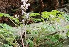 紫堇,罂粟科紫堇属一年生草本植物,高50厘米。主根细长;茎分枝,花枝常与叶对生;基生叶具长柄,叶倒卵圆形;总状花序花冠粉红或紫红色,外花瓣较宽;蒴果线形下垂;种子密被环状小凹点;花期3-4月,…全部>>