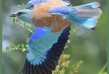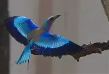 棕胸佛法僧是佛法僧科佛法僧属中型鸟类,体长32~35厘米。黑色的嘴细而下弯。头顶暗蓝色,喉、上背及部分飞羽淡紫;上胸葡萄紫色,具蓝色中央纹,下胸葡萄褐色,腹和尾下覆羽淡蓝色。腰蓝紫色,尾上覆羽辉蓝色。…全部>>