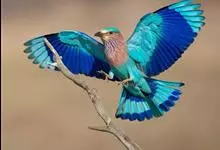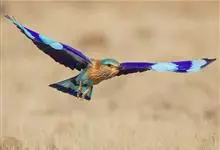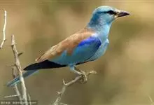 棕胸佛法僧是佛法僧科佛法僧属中型鸟类,体长32~35厘米。黑色的嘴细而下弯。头顶暗蓝色,喉、上背及部分飞羽淡紫;上胸葡萄紫色,具蓝色中央纹,下胸葡萄褐色,腹和尾下覆羽淡蓝色。腰蓝紫色,尾上覆羽辉蓝色。…全部>>