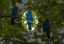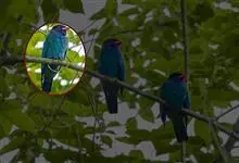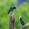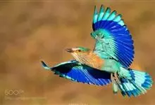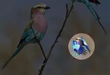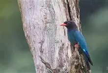 三宝鸟,是佛法僧目佛法僧科三宝鸟属中小型攀禽。成鸟通体为富有光泽的墨蓝绿色,头大而头顶扁平;头部色深近紫黑色,上体至尾泛有铜绿光泽;两翼有幽蓝金属光,初级飞羽黑褐色;羽基淡石青色,形成大块淡蓝,…全部>>